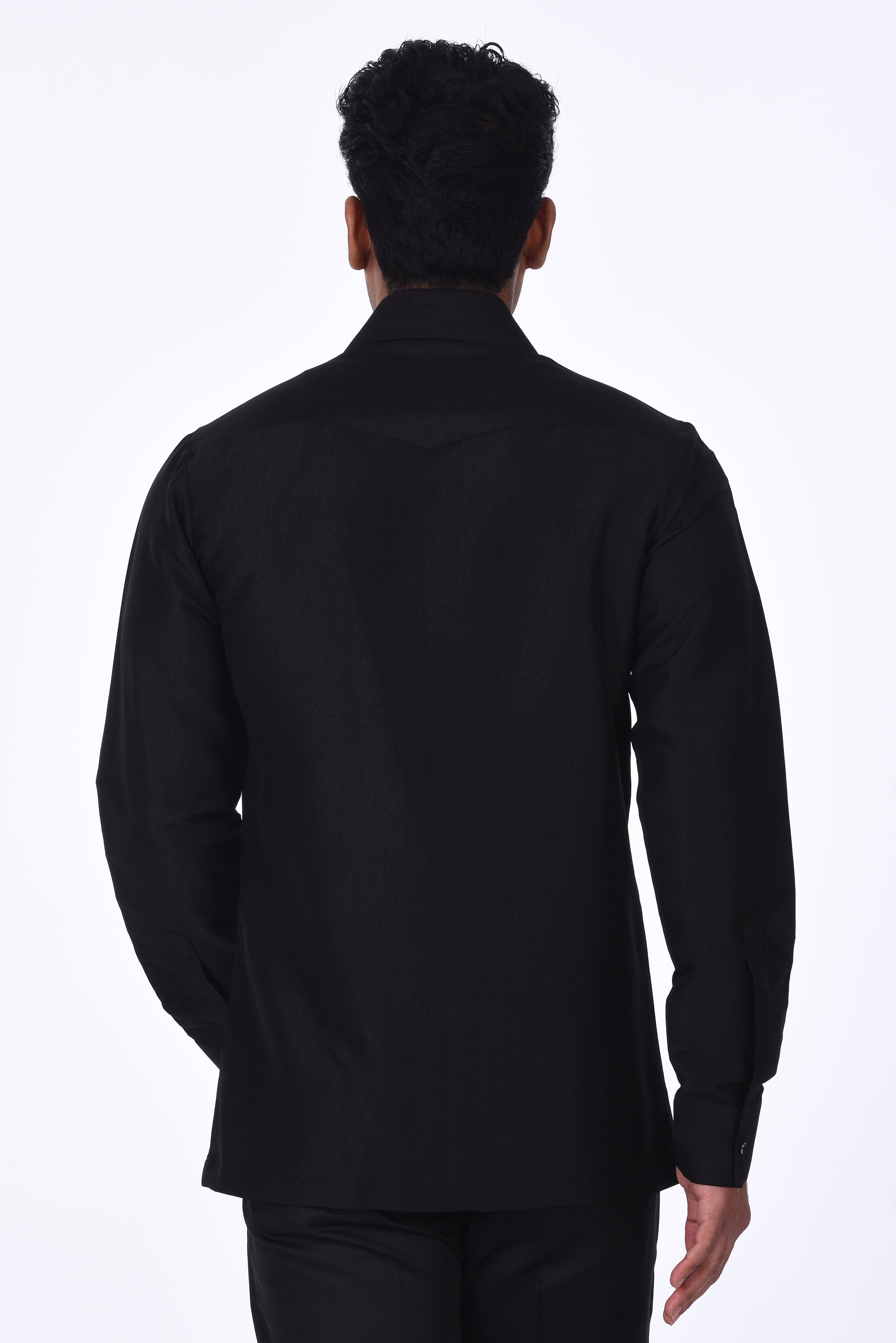 Color Style: A solid, deep black with a tone-on-tone texture throughout.