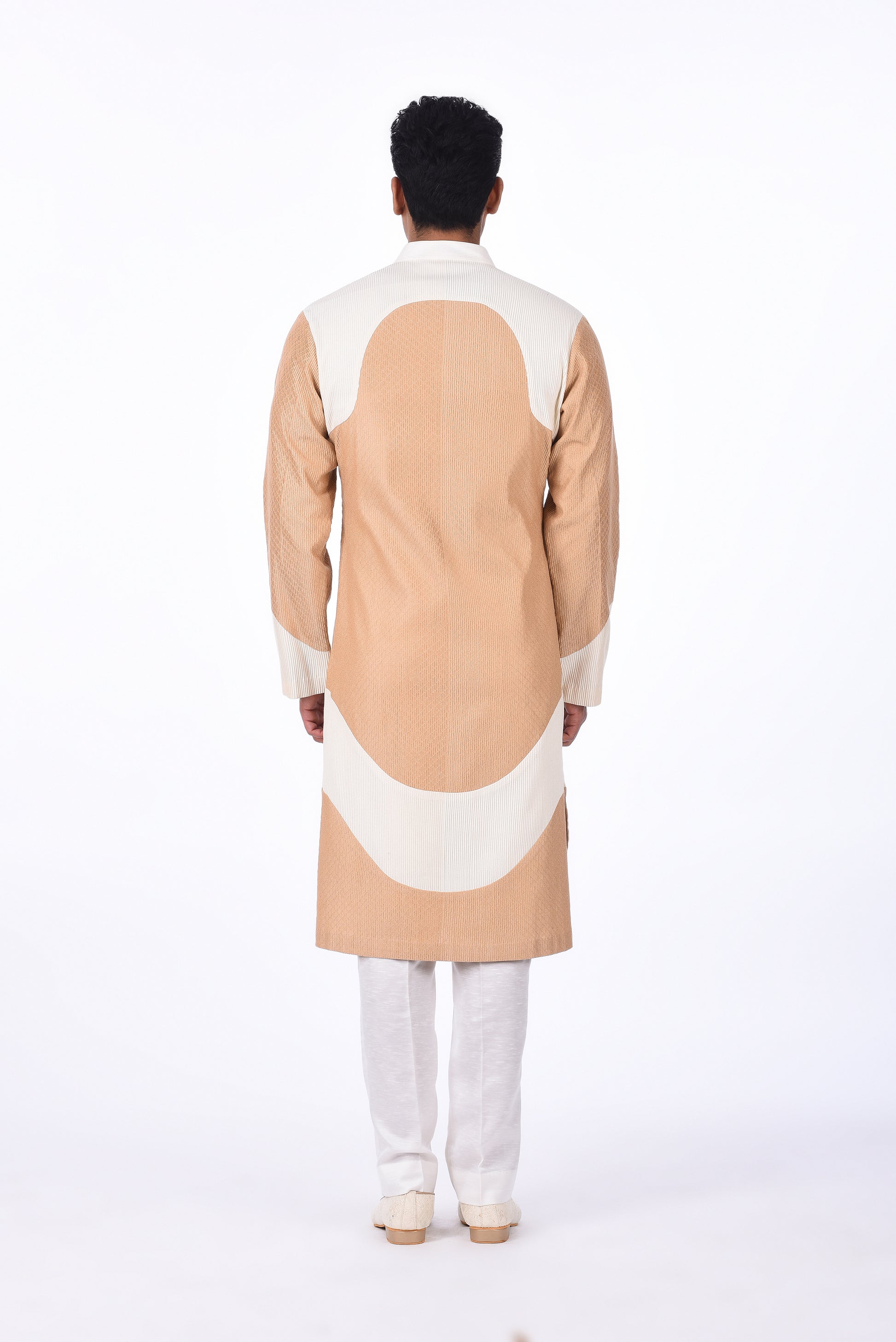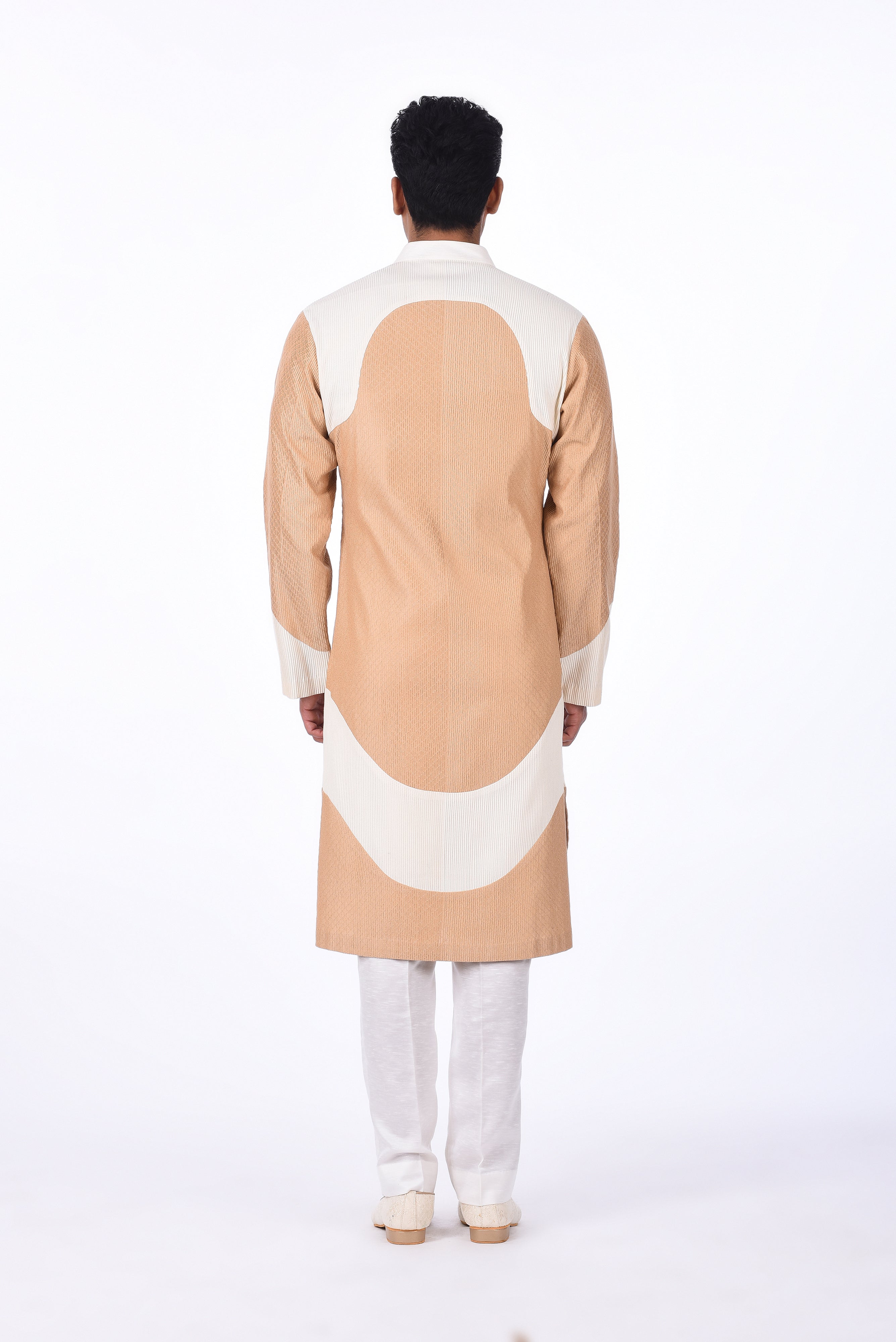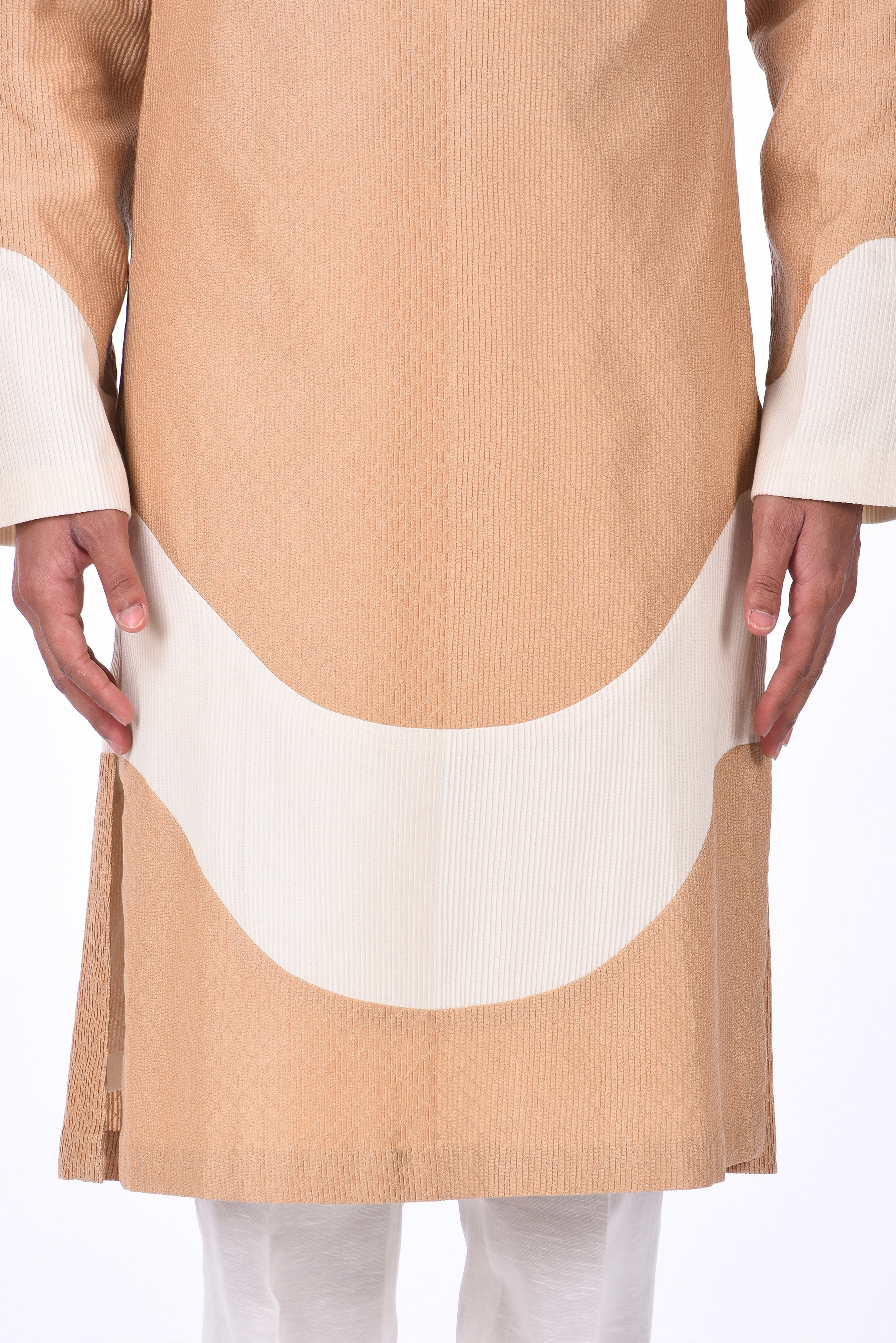 Textured Fabric: Both the tan and ivory sections appear to have a consistent vertical or ribbed texture.